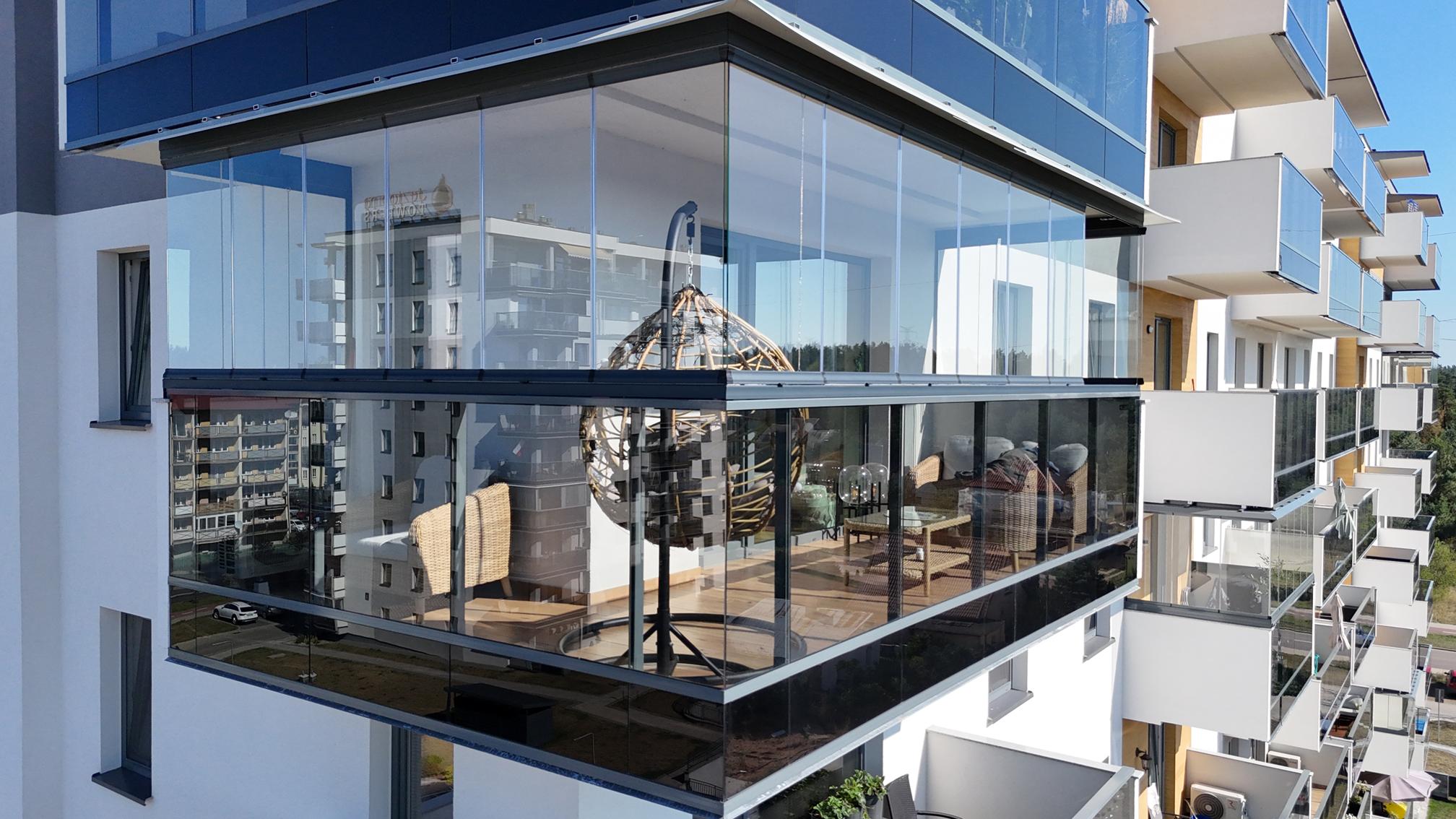 To nowoczesny system zabudowy balkonów, składający się z przesuwnych szklanych tafli. Zastosowane w tym typie zabudowy szkło hartowane ESG o grubości 8 lub 10 mm zapewnia bezpieczeństwo i komfort użytkowania.