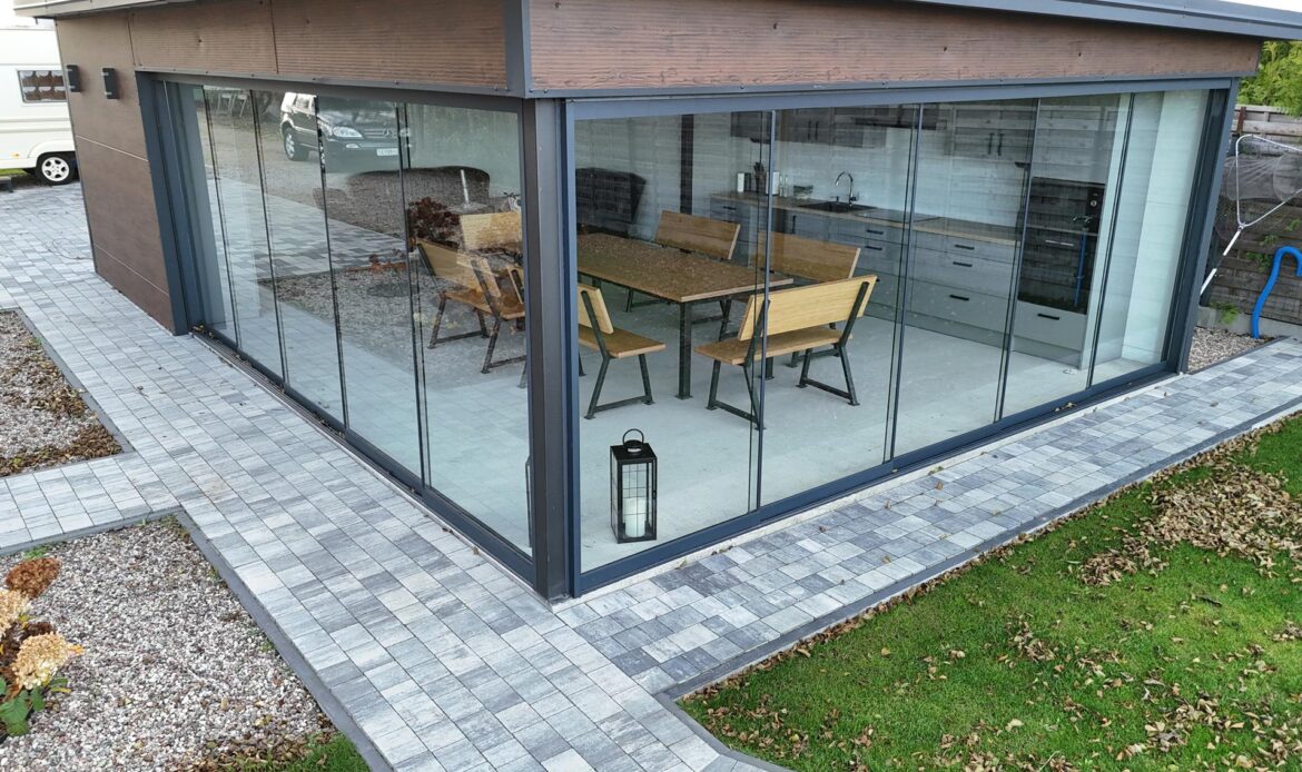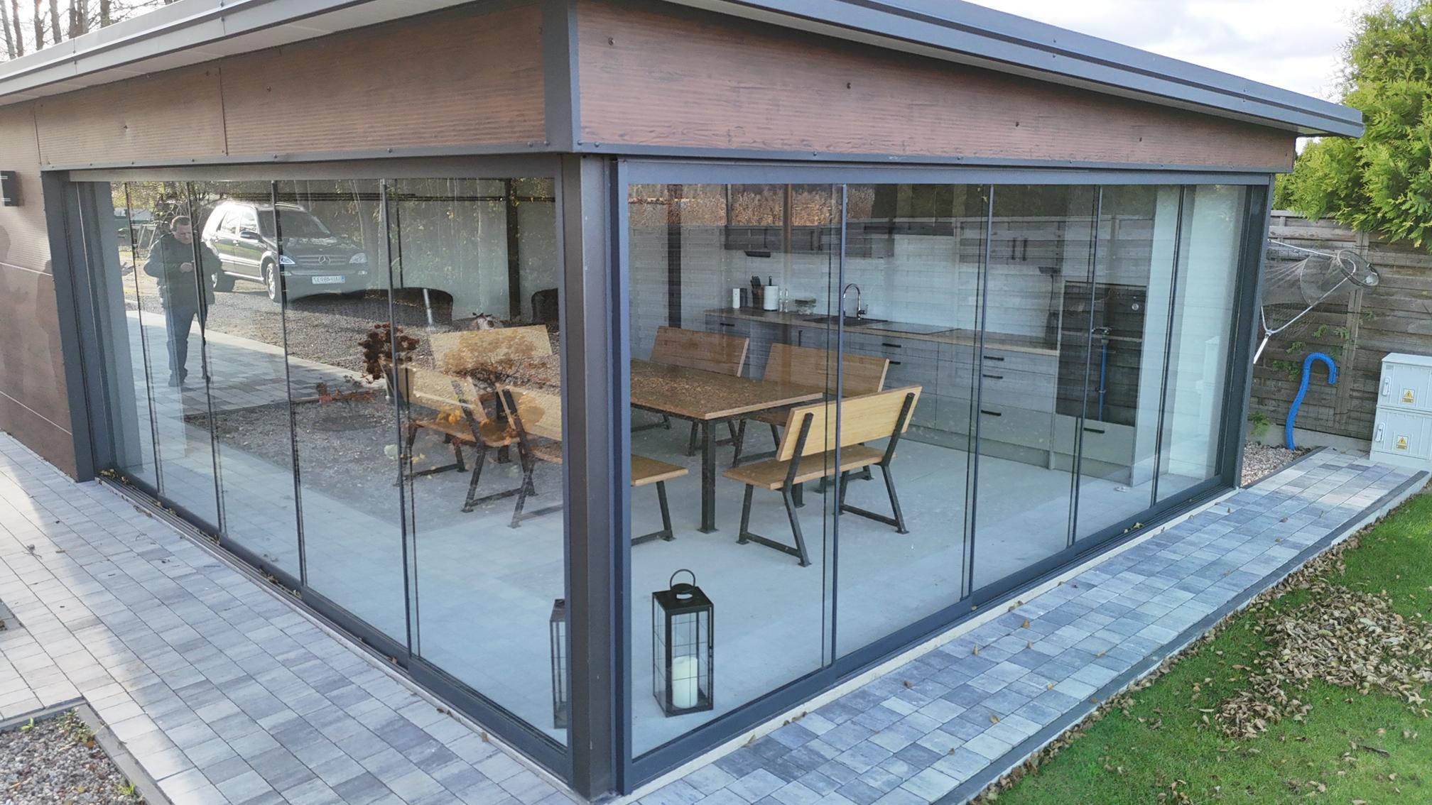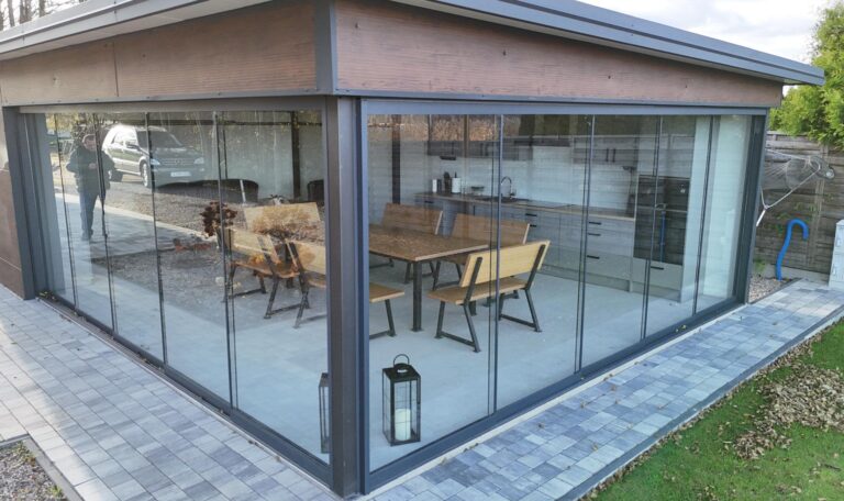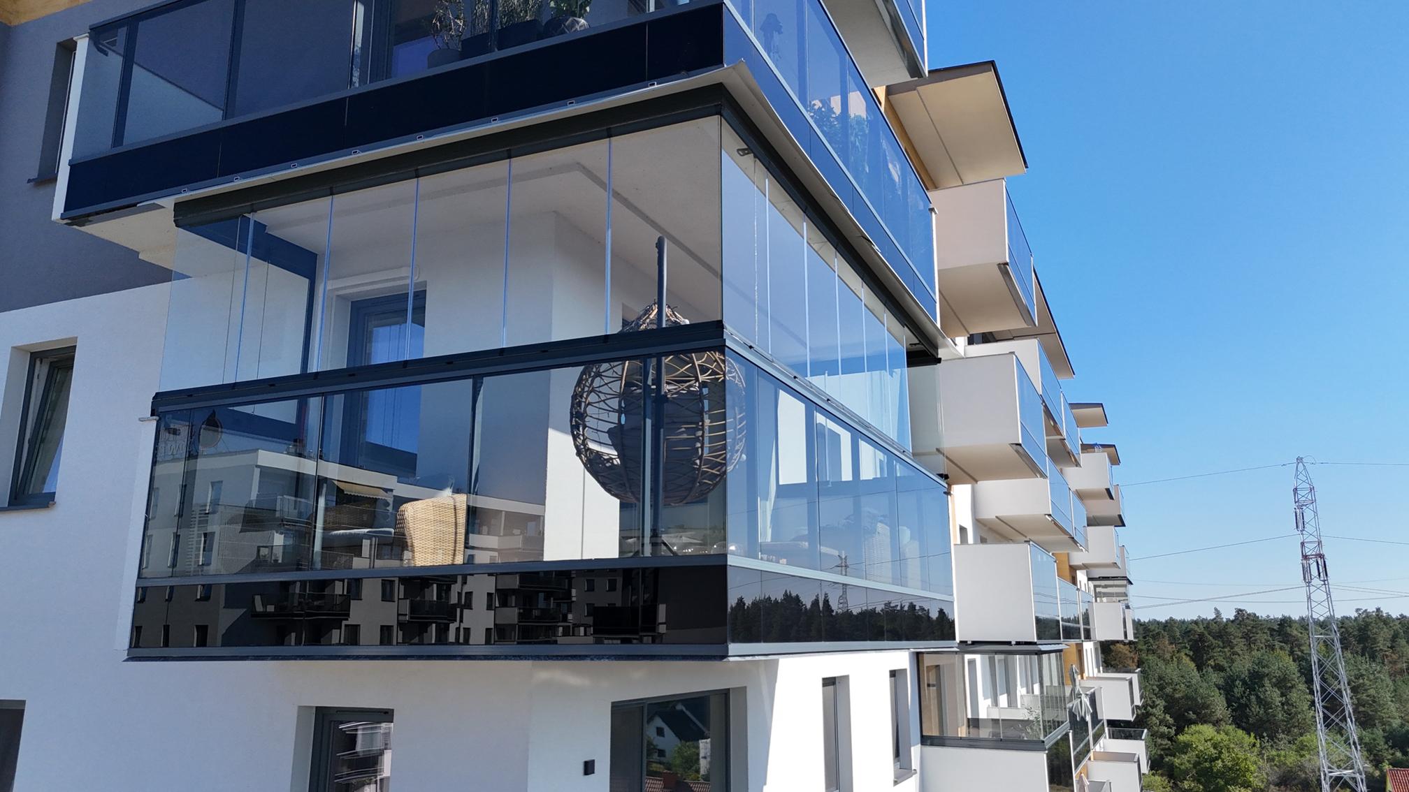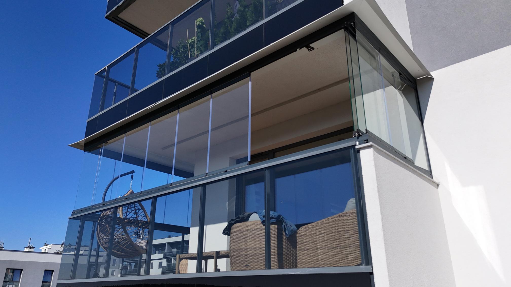 To nowoczesny system zabudowy balkonów, składający się z przesuwno-składanych szklanych tafli. Zastosowane w tym typie zabudowy szkło hartowane ESG o grubości 8 lub 10 mm zapewnia bezpieczeństwo i komfort użytkowania.