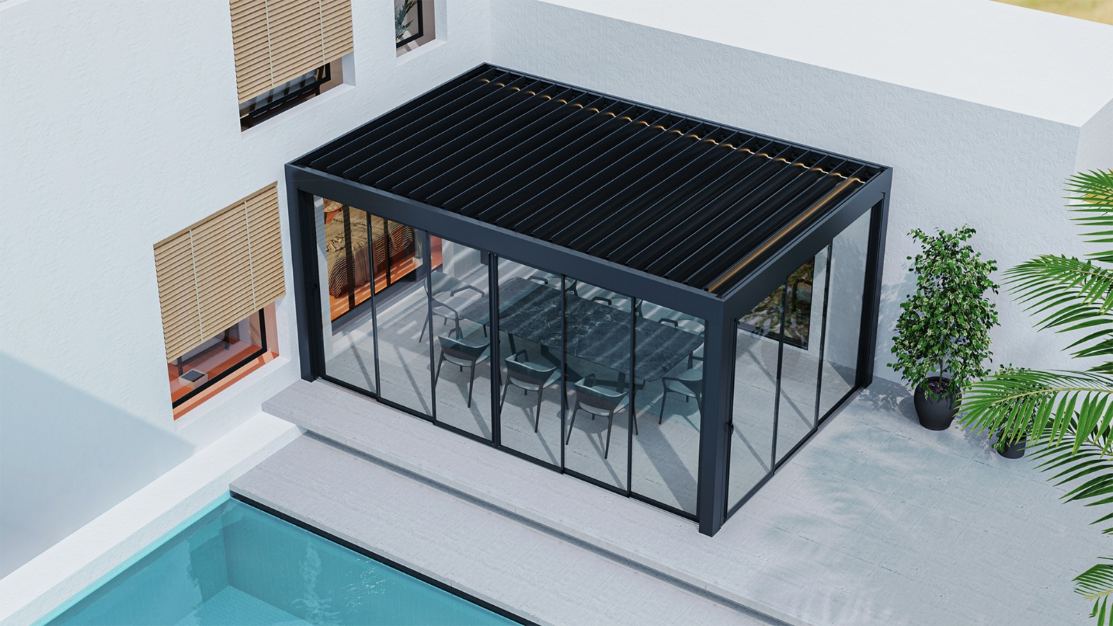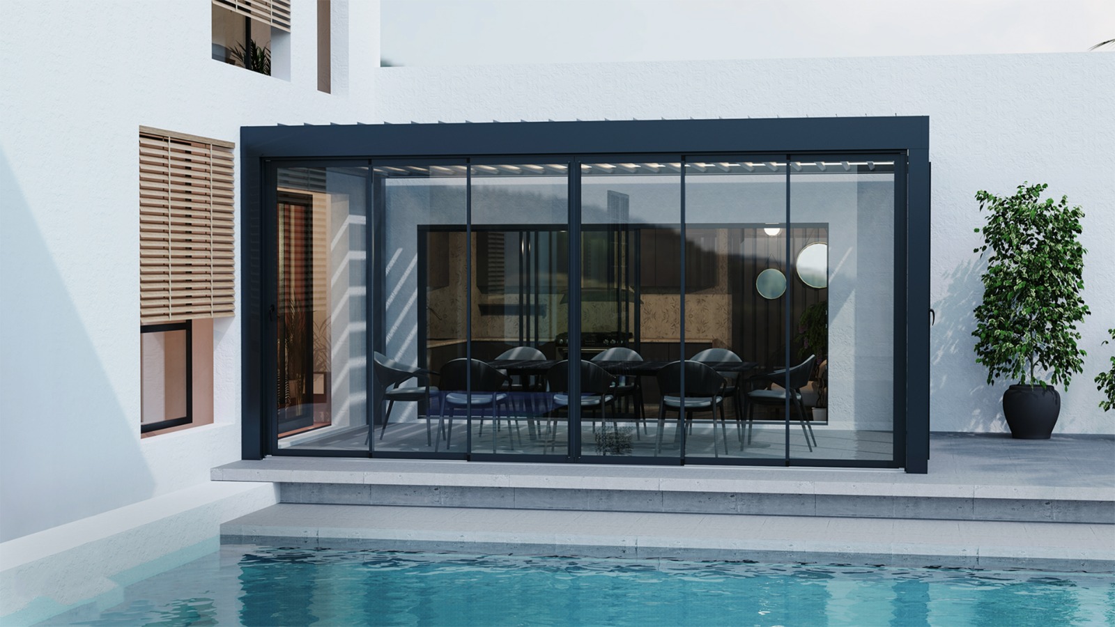 Duże tafle szkła zapewniają maksymalną ilość światła i otwartą przestrzeń widokową. Konstrukcja aluminiowa jest odporna na warunki atmosferyczne i nie wymaga konserwacji.